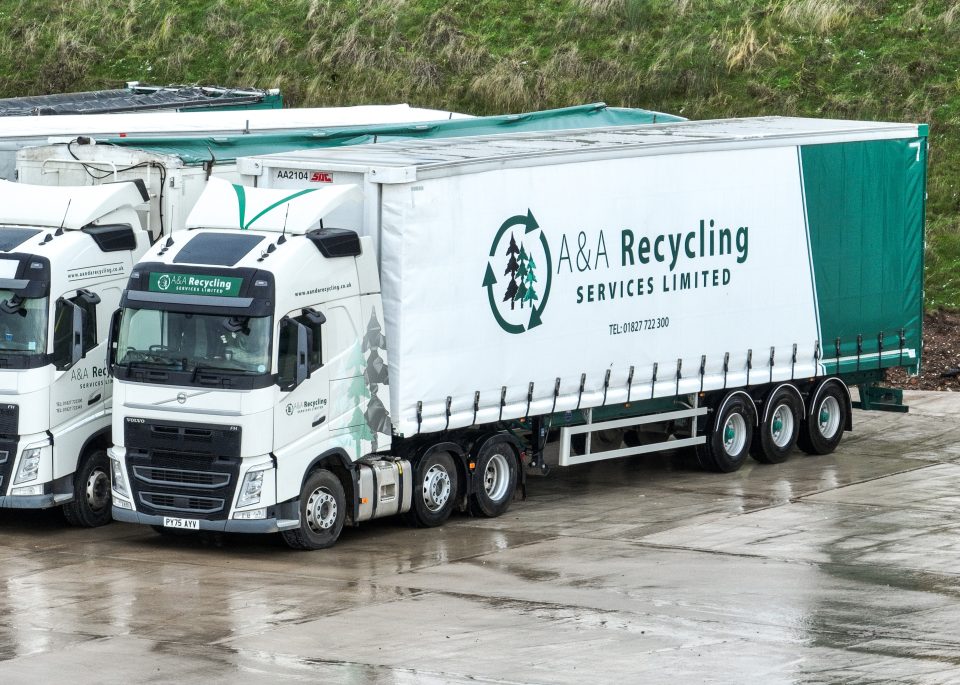 A&A Recycling Services Ltd. operates a large fleet of curtain-sided trailers, providing efficient and flexible collection solutions for palletised materials and irregularly shaped items that cannot be side-loaded onto rigid-sided vehicles.